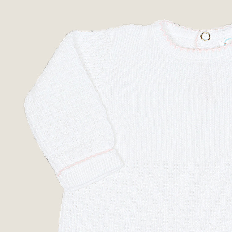 Paty knit romper - handcrafted in Houston, TX. Each peace is made to order and incredibly soft! Great to add a name or monogram to as well. Pair with our adorable matching hat!