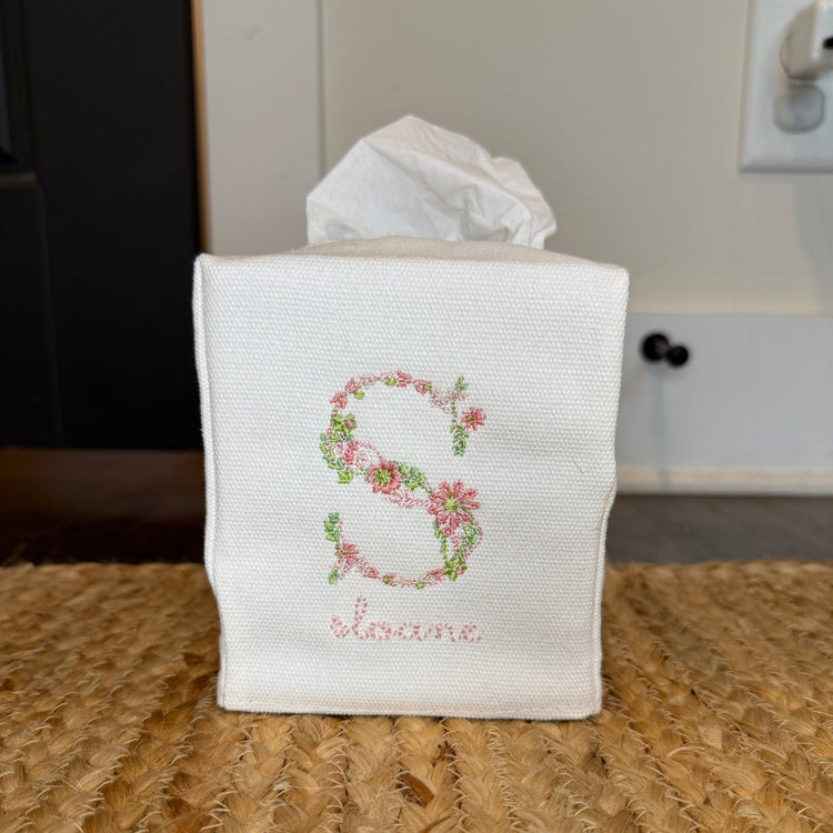 White linen tissue box cover. Add a name, monogram or design of your choice!