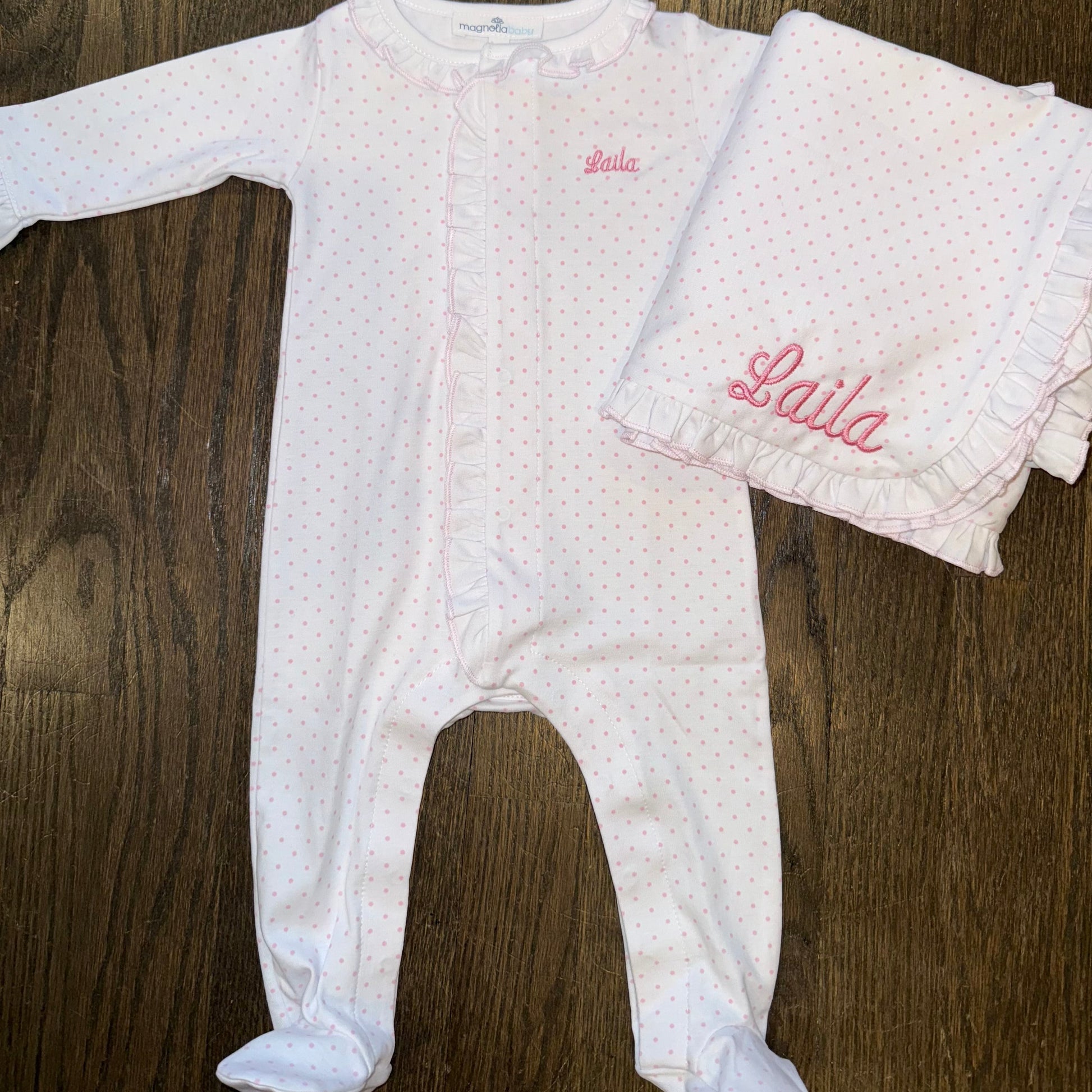 The perfect newborn or hospital coming home outfit for your little one. Add their monogram or name for a special touch!